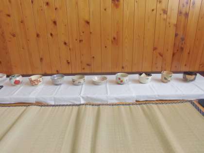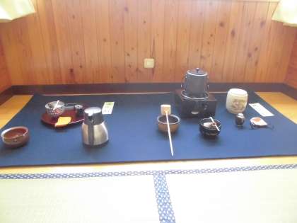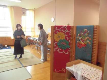 心の教室にも文活展示物が並びました。スクールサポーターの奥野先生が「心の保養に」と茶の湯のお道具、着物、俳句などを展示してくださいました。