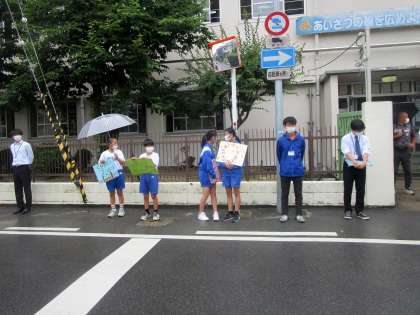本日の「朝のあいさつ運動」は,担当の生徒と教育実習生,職員で行いました。小雨の降る中,ありがとうございました。明日の朝もよろしくお願いします。