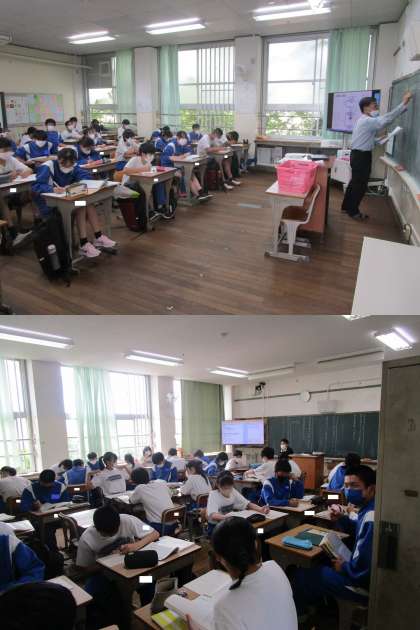 2年生の授業の様子です。宿泊訓練の疲れを感じさせないぐらいみんな勉強を頑張っています。5組の授業は実習生の片山先生がされています。