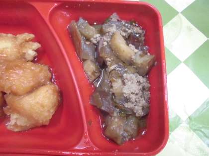 今日の堺市中学校給食で3年生の室永 千波さんの『ナスとひき肉の甘辛煮』がアイディア料理で提供されました。給食を食べた感想を喫食者にたずねててみると「ナスとひき肉との相性がとてもよく、ご飯のおかずにぴったりでした。ひき肉だけだと油ぽくなってしまうところナスを加えることで、さっぱりとした口あたりになっていて、とてもおいしかったです。」とコメントしてくれました。またおいしい料理を考えてくださいね。