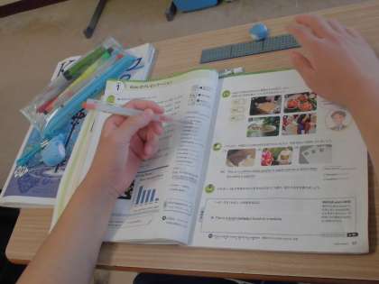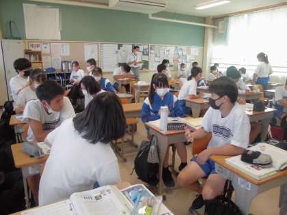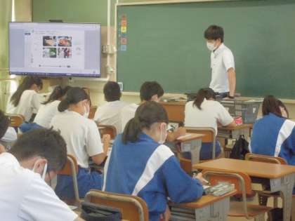 3時間目担任の数見先生の英語の授業です。今日は専門指導員の先生が授業の参観に来られました。生徒たちはいつもの様子で授業を受けていました。