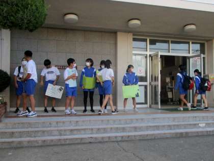 本日の「朝のあいさつ運動」は,担当の生徒と職員,教育実習生で行いました。ありがとうございました。今週一週間よろしくお願いします。