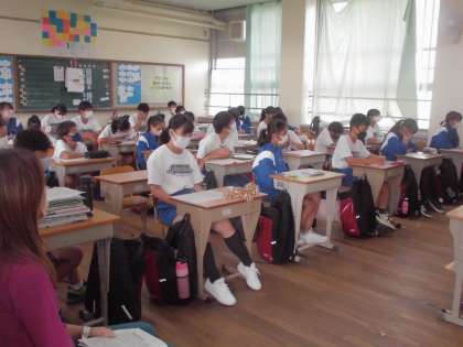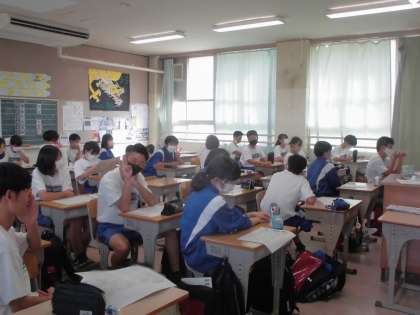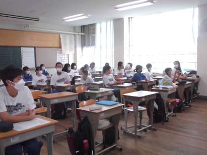 演説放送を見ているクラスの様子です。