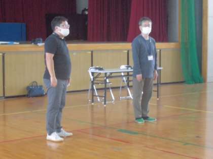 中間テスト日の午後を利用して教員向けの不審者対応訓練を行いました。警察官OBの方を講師に迎えて、学校に不審者が侵入してきた時の対応訓練を教職員で行いました。