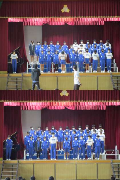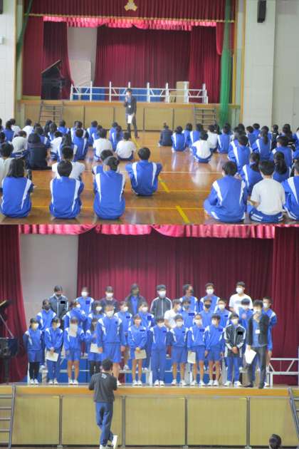 2年生の合唱の練習の様子です。本日は体育館の割り当てでした。音楽科の中田先生からコンテストについての説明を受けて、合唱の隊形や入退場の練習を行いました!