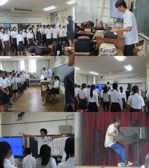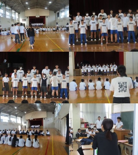 三国丘中学校の全校集会は、生徒会が仕切ります。今日も司会進行は生徒、メインの発表は、3つありました。