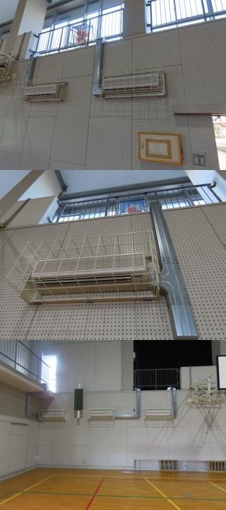 いよいよ体育館に冷暖房の設備が設置されます。これだ暑い夏も寒い冬も安全に安資して活動ができるようになります。