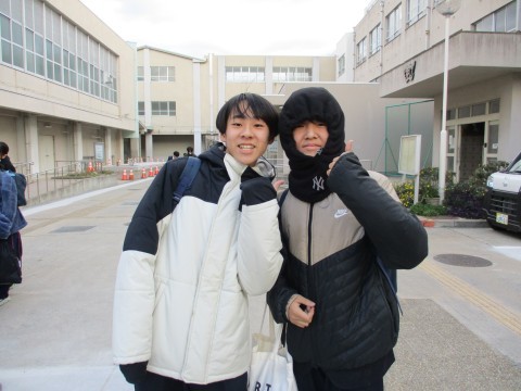 寒い金曜日の朝です。部活動あいさつ運動実施中です。