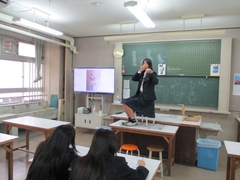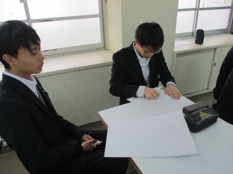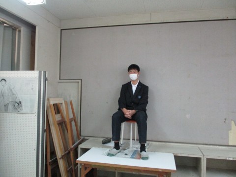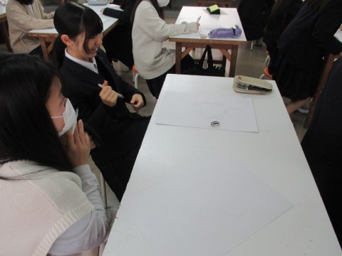 美術授業、人物をデッサン中です。