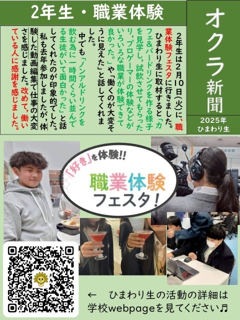 2年生に取材して「職業体験フェア」のはがき新聞を完成させました。ぜひご覧ください。