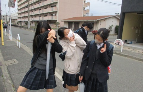 学習の確認をして登校する人たちも多く見られました。