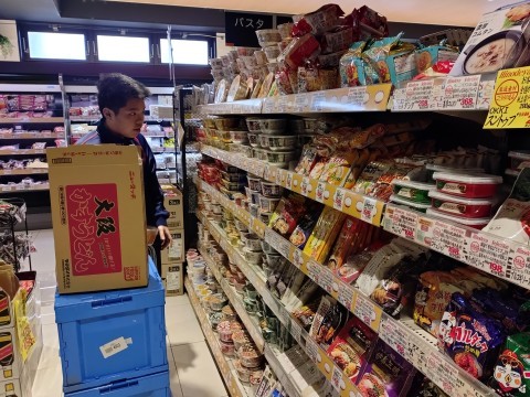 生鮮食品の袋詰めや、飲料やインスタ食品などの品出しを体験させてもらいました。