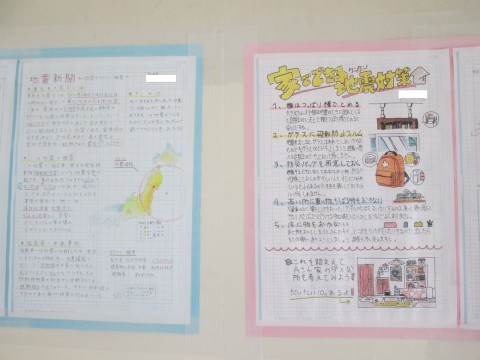2年生フロアには防災について作成した掲示物があります。どれも力作ぞろいで興味深いです。