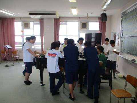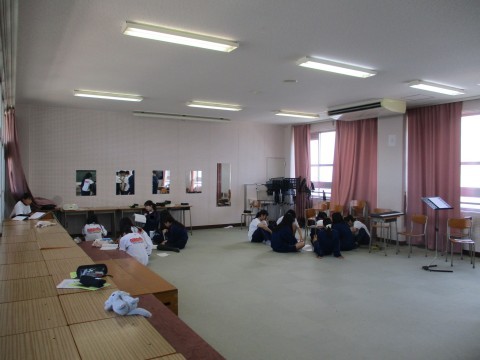 音楽授業、各パートに分かれて合唱の練習です。