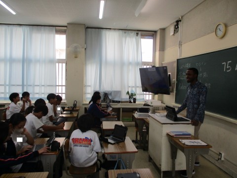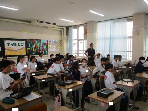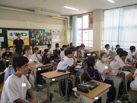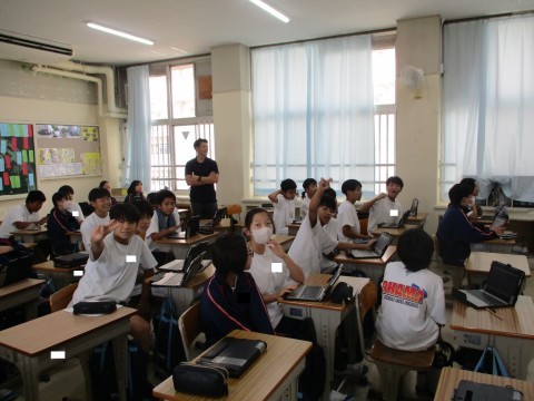 NSの先生との英語授業です。とても楽しそうで、活発に参加しています。