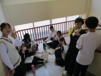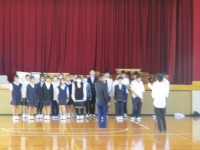 お天気が良く日差しが強いです。今朝の登校と体育授業の様子です。