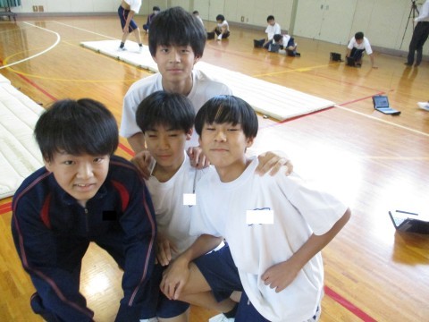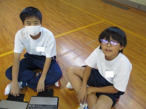 タブレットで動画を撮り、お互いのフォームについてアドバイスをしています。