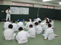 体育授業、器械体操マット運動です。しっかりと準備運動を行っています。