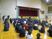 続いて女子ソフトテニス部へ全校生徒による壮行会を行いました。