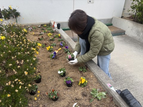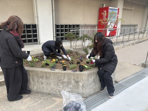 28日の放課後,PTAの環境美化委員さんに花壇の花を植え替えていただきました。