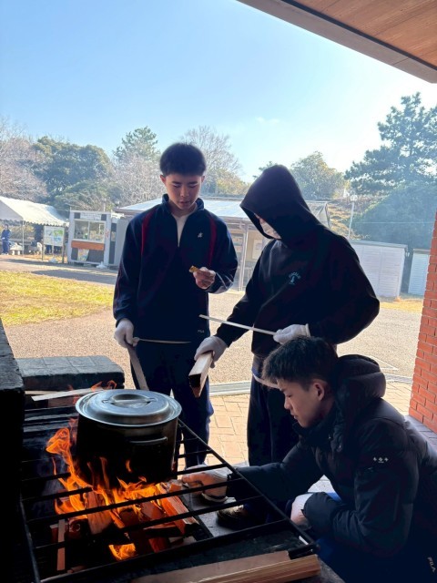 かまどに火が入り、もう調理開始!