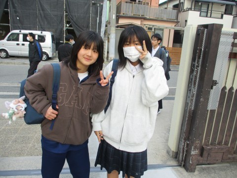 今朝の登校の様子です。良い笑顔と良いお天気です。