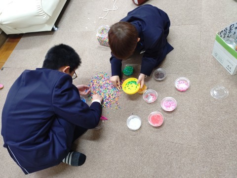 ひまわり学級では、自立活動としてアイロンビーズや、塗り絵、掃除など様々な活動を通して学習しています。