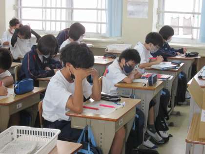 漢字を使った四字熟語の説明を聞いています。