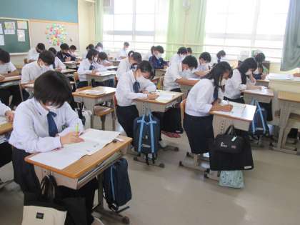3年生は先週のチャレンジテストに引き続き、第1回目の実力テストです。緊張感のある中で、実力を発揮してください。