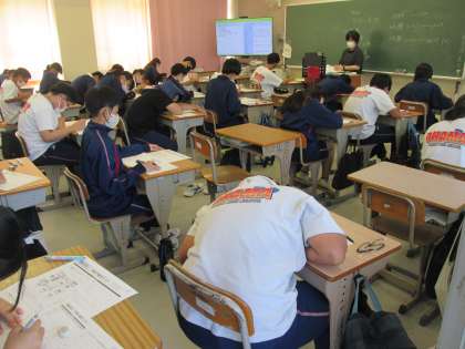 2年生は夏休みの宿題テストを行っています。