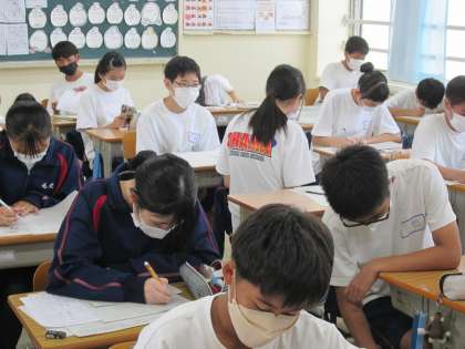 返却されたテストの解説を聞いています。
