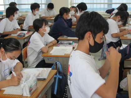 返却されたテストに間違いがないか確認しています。