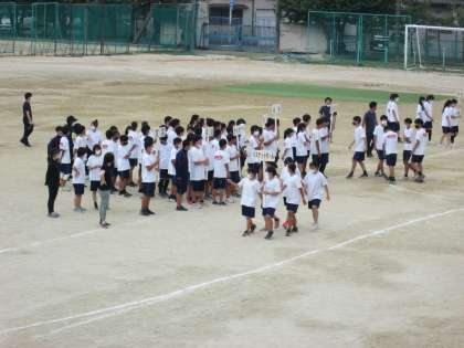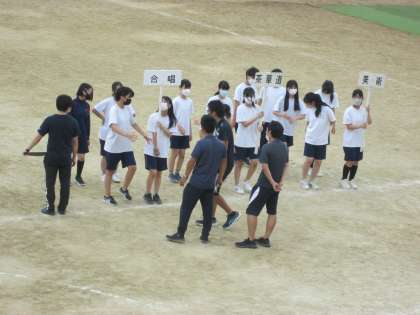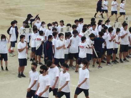 各クラブの3年生は、部活動行進の練習をしました。