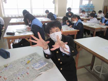 1年生は彫刻刀を使って、ゴム印を作っています。彫刻刀でけがをしないように注意してください。