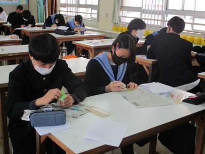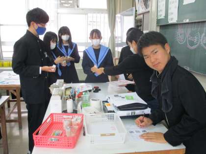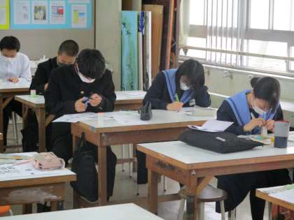 篆刻を作っています。できた篆刻を色紙に押印しています。