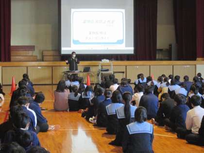 2年生は体育館で「薬物乱用防止教室」を行いました。