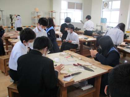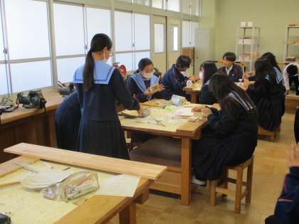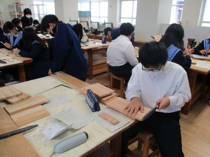 本立てを作っています。木材を切って、けがきし、組み立てます。