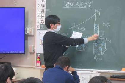 飽和水蒸気量について、容量によって変化することをグラフで確認しています。
