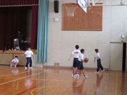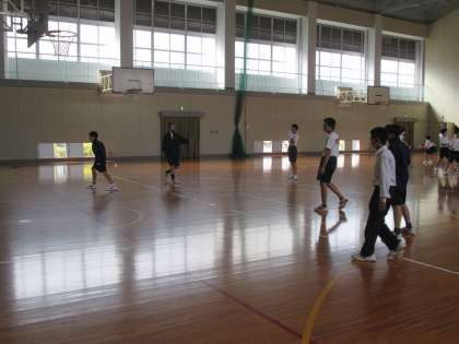 体育館をのぞくと、ドッヂボール・バドミントンそしてバスケットボールなどいろいろな競技を行っていました。
