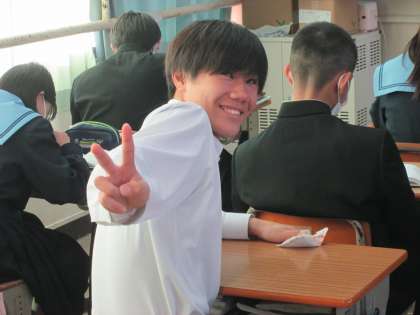 今日の天気のように、明るい表情でVサインです。