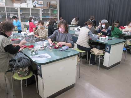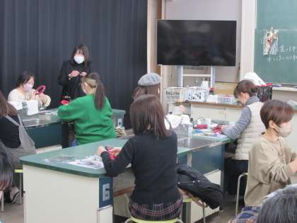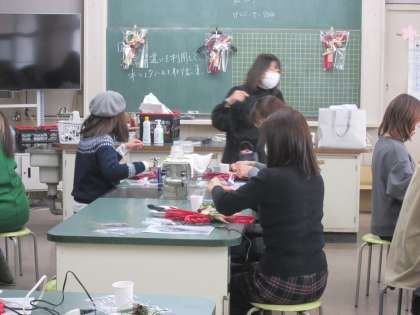 今年のPTA校内研修は講師の先生をお招きして、「ブリザーブドフラワーのしめ縄作り体験」を行いました。