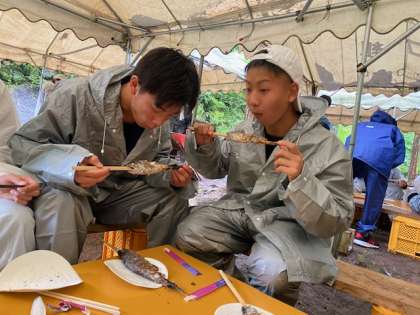 自分で釣って焼いたヤマメの味は、最高でした!