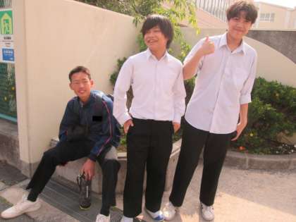 登校時に「あいさつ運動」を実施している人たちがいました。