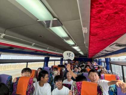 車内では文化委員さんがアンケートを取ってくれた曲を聴きながら盛り上がっています。