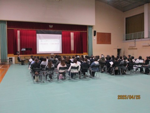 クラス発表、担任の先生や新しい先生方の紹介もあり、ドキドキや笑顔が溢れる体育館でした。