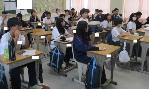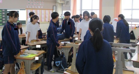来週月曜日は中間テストです。座席の準備をしているクラスもありました。