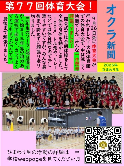 少し遅くなりましたが,体育大会について「はがき新聞」についてまとめましたので,ご覧ください。
