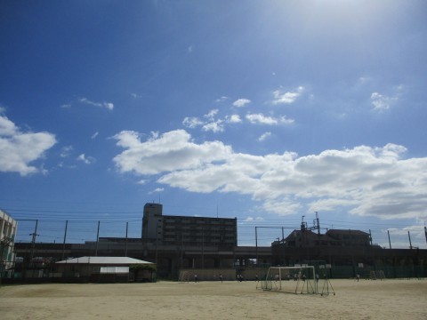 お天気が良く日差しが強いです。今朝の登校と体育授業の様子です。