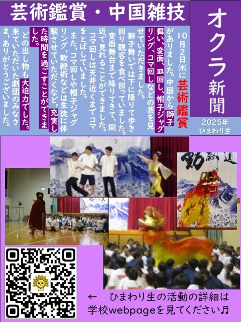 先週の芸術鑑賞の様子をひまわり生がオクラ新聞にまとめました。ぜひ,ご覧ください。