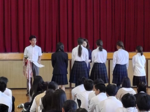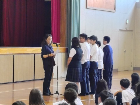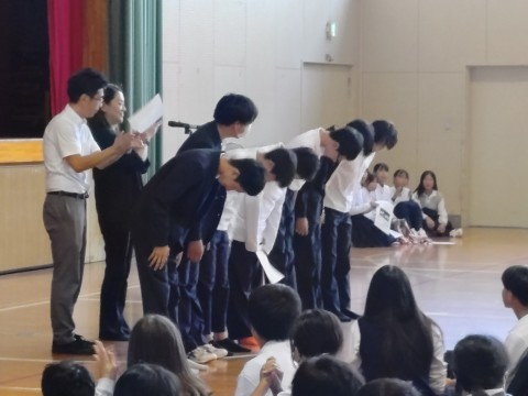 部活動や理科展などの表彰の様子です。